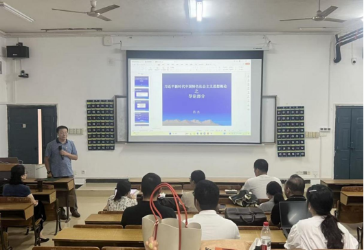 学院院长肖杰围绕课程“导论”部分进行专题导学。他系统梳理了该章节的整体框架与核心内容,指出“导论”作为全书的开篇与纲领,具有统领全局、奠定基调的重要作用,涵盖习近平新时代中国特色社会主义思想形成的时代背景、理论渊源、科学体系、历史地位以及学习实践要求等多个方面。肖杰强调,讲好“导论”关键在于引导学生深刻领悟“两个确立”的决定性意义,准确把握“十个明确”、“十四个坚持”、“十三个方面成就”的核心内涵,深入理解“六个必须坚持”所蕴含的世界观和方法论。