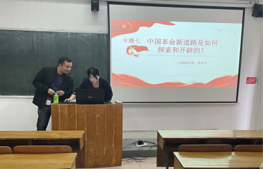 2023年5月10日,在“中国革命新道路是怎样探索和开辟的”这一专题教学中,koko体育官网王敏老师向同学们讲清楚这一专题的教学目的与要求,从理论逻辑与实践逻辑上向同学们讲述清楚“认识国民党政权的阶级性质,认识探索中国革命新道路的曲折发展历程,以及革命新道路理论的形成,以及认识“农村包围城市,武装夺取政权”的这一革命新道路理论是中国共产党集体智慧的结晶,是马克思列宁主义的基本理论与中国革命具体实际相结合的典范。”等内容;人文学院陈家华老师则从“中国为什么必须继续革命、马克思主义为什么必须中国化、中国革命的道路为什么必须从农村开始、为什么必须弘扬井冈山精神”等四个方面通过生动的讲述和鲜活的案例向同学们进行讲述。