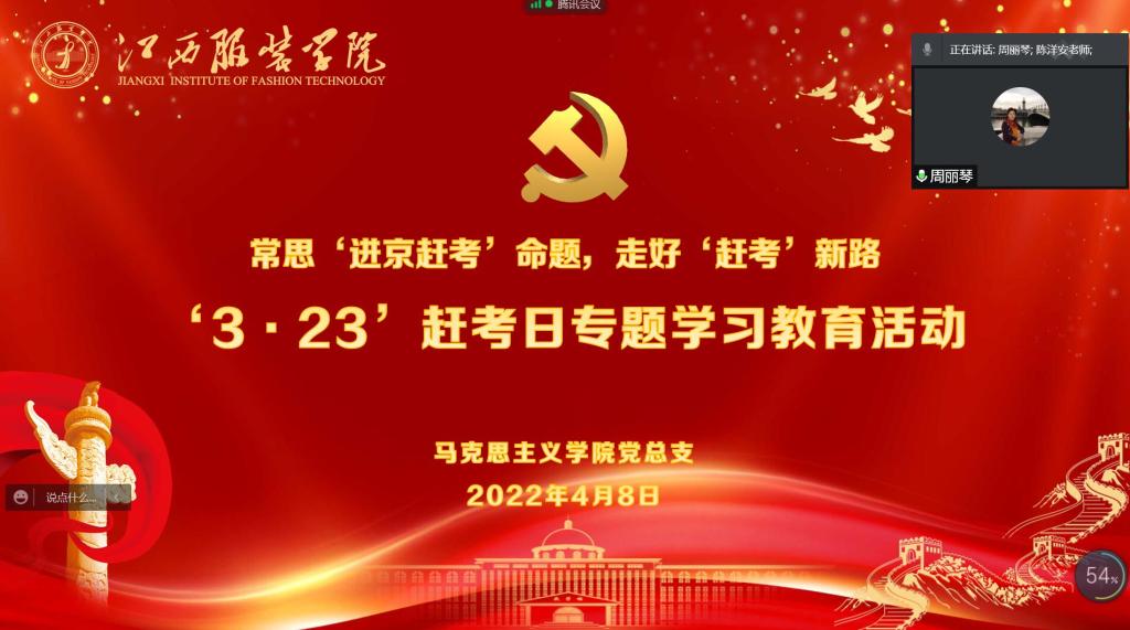 会上,学院副院长张龙龙同志组织大家学习省委书记易炼红在全省“3·23”警示教育活动暨省委理论学习中心组集体学习时讲话精神,省委决定把3月23日这样一个具有特殊意义的日子作为警示教育日,就走好新时代赶考之路提出要求并强调:忠诚是根本“考验”,必须炼就信仰坚定的钢筋铁骨;岗位是最好“考场”,必须干出新时代的“第一等的工作”;人民是阅卷“考官”,必须竭力创造人民满意的时代业绩;自己是永远“考生”,必须保持永不懈怠的奋斗姿态;法纪是严明“考规”,必须永葆清正廉洁的公仆本色。大家要深入学习贯彻习近平总书记视察江西重要讲话精神,牢记“两个务必”,保持“赶考”清醒,奋力走好新时代的赶考之路,以优异成绩迎接党的二十大胜利召开。
