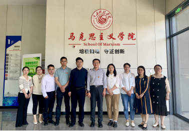 随后,肖杰院长一行参观了该校koko体育官网教学及办公场所,在会议室开展座谈交流。肖杰院长首先介绍了koko体育koko体育官网建设情况,并表明了此次交流学习的主要目的。熊春泉院长介绍了该校koko体育官网建设情况、思政课教师队伍建设及青年教师队伍培养、思政课课程开展及理论与实践教学安排、“大思政课”建设成效与建设规划等方面进行了交流分享。随后,与会双方就koko体育官网的课程建设、实践教学、思政课教学改革创新、大学生思想政治教育以及其他教学科研等相关问题进行了热烈交流研讨。
