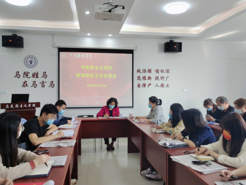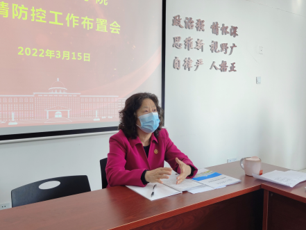 最后,学院院长周丽琴强调,希望学院全体教师一是要加强思想认识,要做到非必要不出市,近期不要出省,若因事需外出的切实履行报备手续;二是要加强自我防控,线上线下开展教学活动,出现异常情况要及时上报;三是要坚决落实防控要求,保持好高昂的工作斗志,坚决守牢疫情防控底线,切实维护好师生及家人的生命安全、身体健康和校园安全稳定。