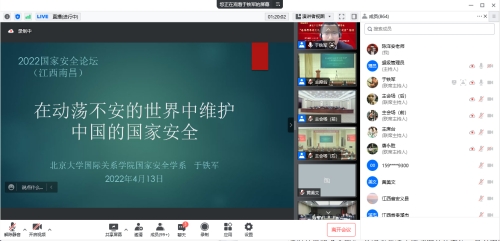 2022年4月13日至14日,江西省委国安办联合北京大学、南昌大学共同举办了以“总体国家安全观与新时代中国国家安全”为主题的“全民国家安全教育日主题活动——2022 国家安全论坛”。koko体育官网教师通过线上腾讯会议观看直播,线上听取了中国人民解放军国防大学教授、国家安全学院原副院长、国务院学位委员会国家安全学科评议组成员唐永胜教授,北京大学国际关系学院国家安全系主任、北京大学国际战略研究院副院长于铁军教授分别以《坚持总体国家安全观 走出一条中国特色国家安全道路》《在动荡不安的世界中维护中国的国家安全》为题作大会主题报告。观看论坛的老师纷纷表示,国家安全离我们很近,而且就在身边,每一个人都应该参与到维护国家安全工作中来,同时作为一名思政课教师,要以全民国家安全教育日为契机,向广大青年学生讲好国家安全教育课,增强国家安全意识,筑牢安全防线,共同维护好国家安全。