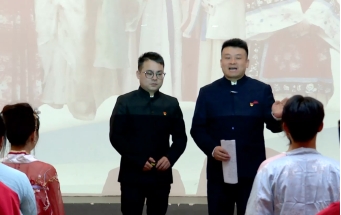 而在“不断提升国家文化软实力和中华文化影响力”环节,陈洋安老师以G20杭州峰会文艺演出《最忆是杭州》中吟诵《鹿鸣》为例,彰显中华诗歌礼乐的文化魅力与价值,号召新时代青年勇担传播中国文化的重任。潘泽中老师详细解读《鹿鸣》所倡导的“礼乐中和”理念及其对构建和谐社会与人类命运共同体的现实意义,同学们身着传统服饰的吟诵表演更是将课堂氛围推向高潮。