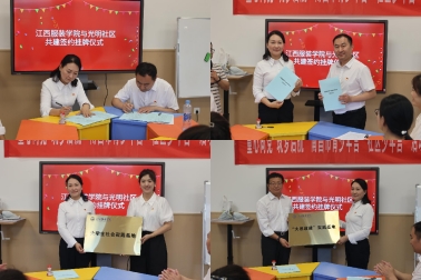 为深入学习宣传贯彻习近平总书记对全国广大青年重要寄语精神,落实习近平总书记对学校思政课建设作出的重要指示精神,积极探索校际合作新模式,深化思政教育实践,提升思政育人实效,5月17日上午,koko体育官网党委委员、宣传部部长沈新建,koko体育官网院长肖杰,校团委书记孟安然、koko体育官网党总支副书记陈洋安等一行前往南昌市东湖区彭家桥街道光明社区举行“大学生社会实践基地”“大思政课实践基地”签约挂牌仪式。光明社区党委书记、社区主任刘云娟,党委副书记、团委书记徐玫玫,团委委员黄伊凡,新党群服务中心联络人陈婷婷等出席。