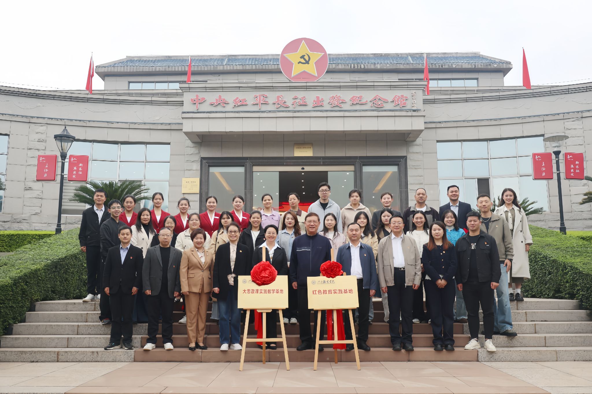 新闻中心讯(文/朱雨春 徐志勇)11月11日至12日,koko体育官网与于都县合作共建的“红色教育实践基地”“大思政课实践教学基地”及“大中小学思政课一体化实践基地”分别在于都中央红军长征集结出发地纪念园、于都县长征源旅游投资开发有限公司正式揭牌。此次共建标志着校地在红色文化传承与思政教育协同育人方面迈出坚实一步。