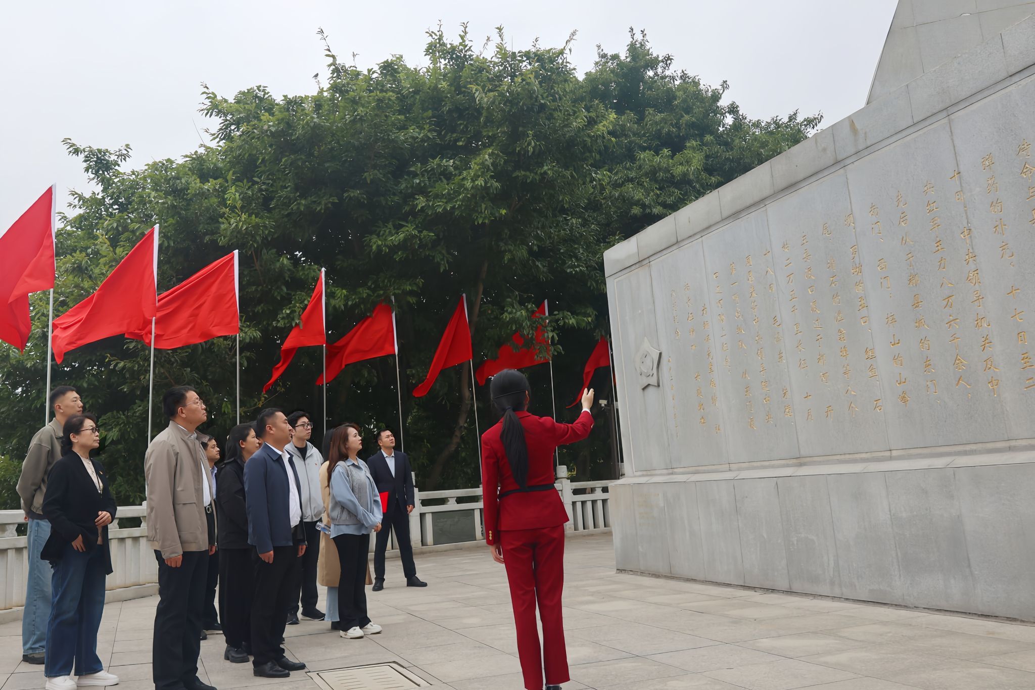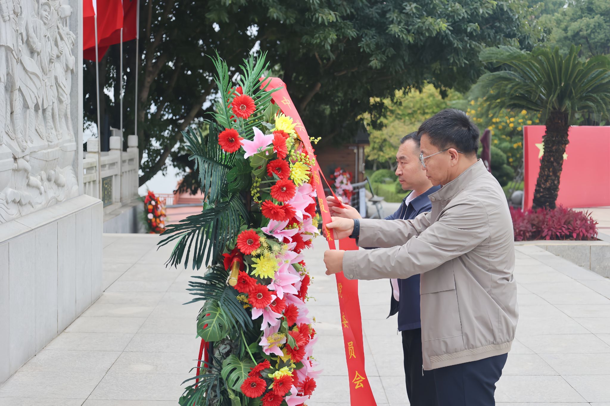 仪式前,koko体育官网党建思政人员向中央红军长征出发纪念碑敬献花篮,全体人员肃立瞻仰、重温入党誓词。